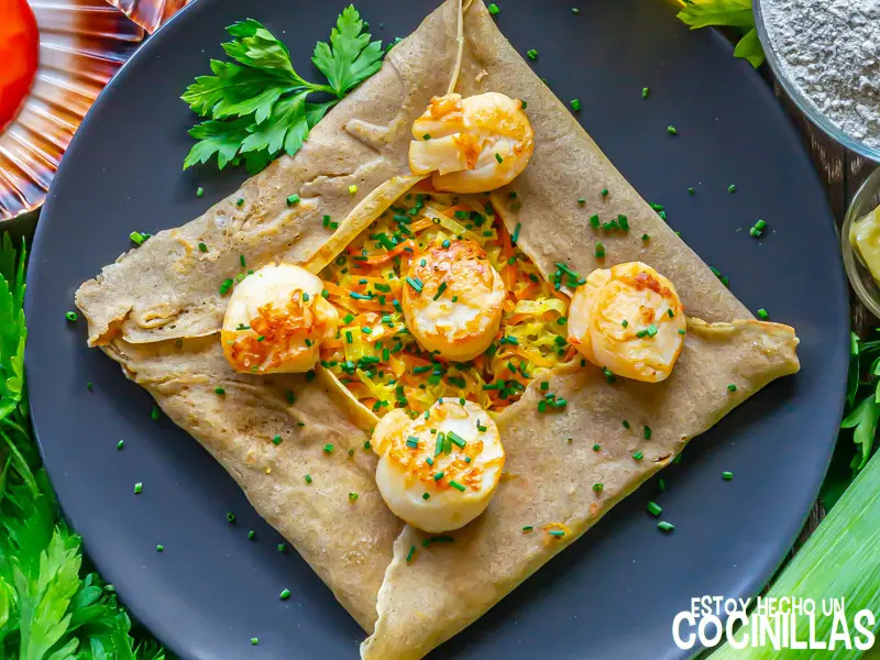 Hoy cocinamos unos crepes salados con deliciosas vieiras, que están en su mejor momento. Además, vamos a ponerle un relleno de verduras cremoso que combina de maravilla con ellas.