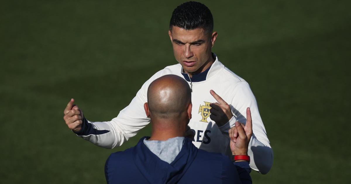 Cristiano Ronaldo se ejercita junto a sus compañeros de la selección portuguesa.