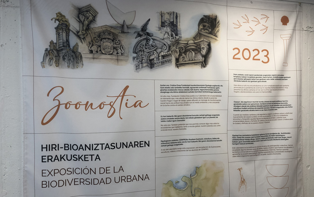 Cristina Enea Fundazioa, junto al alumnado del Ciclo de Grado Superior de Diseño de Ceinpreo, ha inaugurado una exposición titulada Zoonostia. Un zoológico a la donostiarra, con los animales de piedra que habitan en los edificios de San Sebastián como protagonistas.