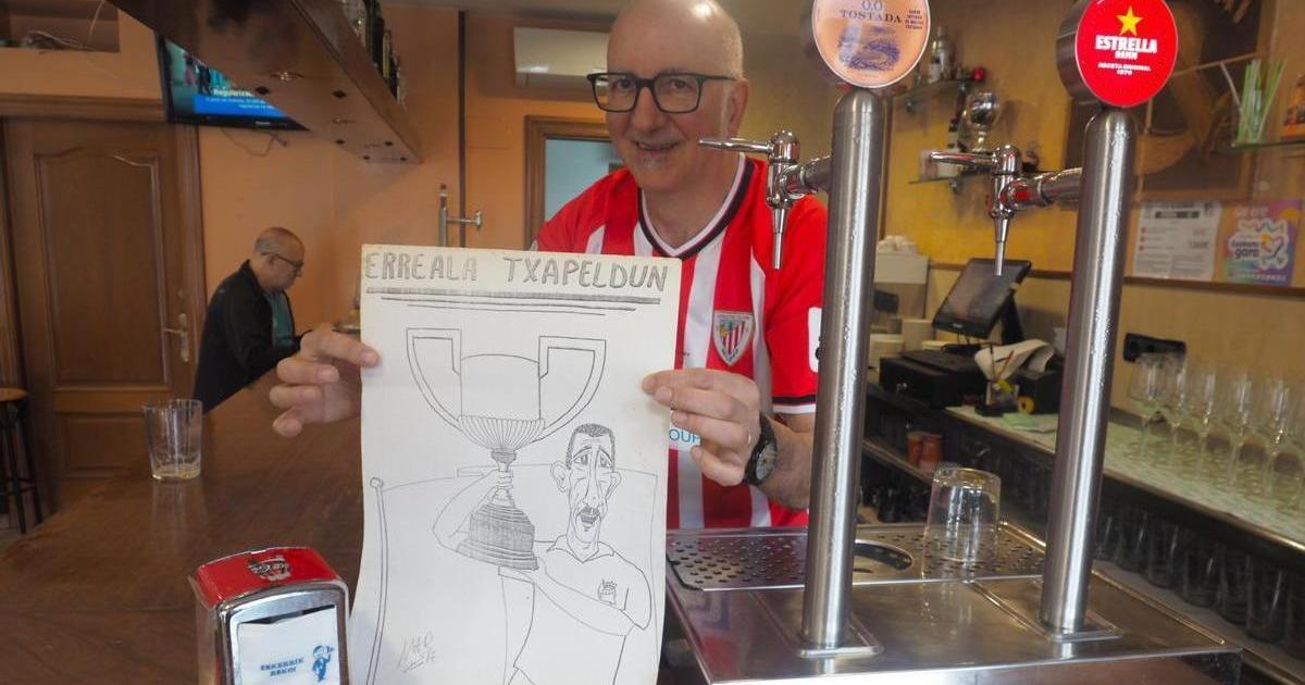 Esa comunión no paró ahí. Animado por su pasión por el dibujo, plasmó la alegría realista por el título en una caricatura protagonizada por Jesús Mari Zamora que se convirtió en un pequeño fenómeno social y en una pieza codiciada entre los seguidores de la Real Sociedad de Elgoibar.