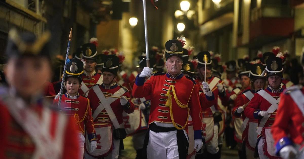 Megafoniatik entzuten zen musikak lagunduta, konpainiak alde zaharreko kaleetan barrena abiatu dira, Soreasuko San Sebastian parrokiarako bidean.