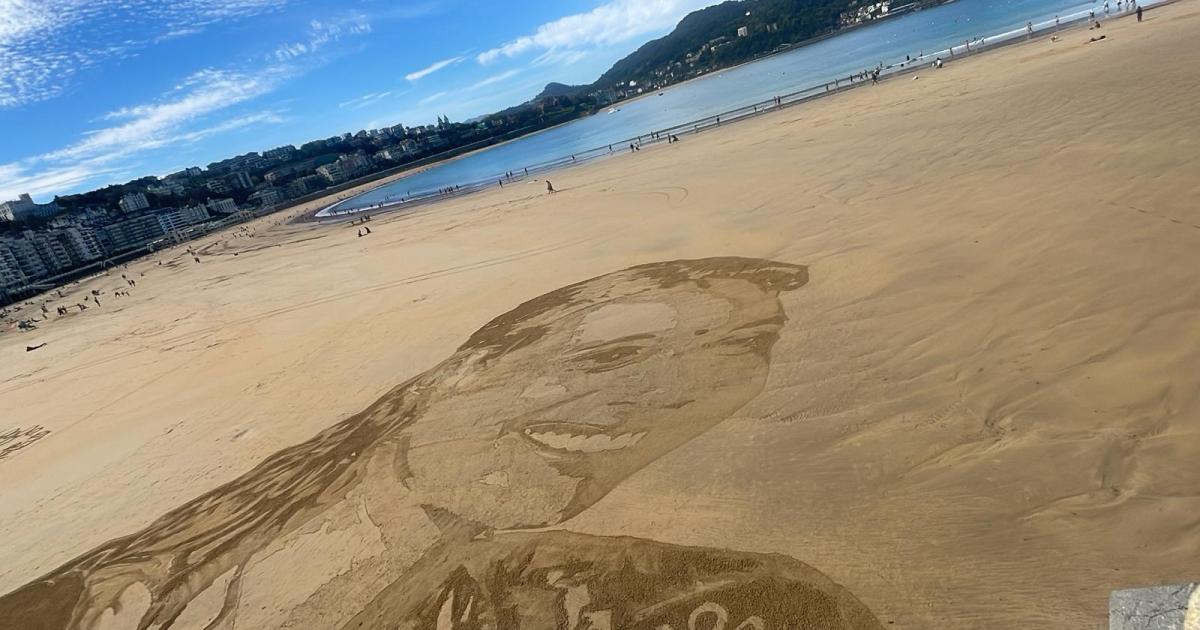 Quienes han paseado hoy por La Concha, en Donostia, se han sorprendido al ver un gran mural dibujado en la arena, un rostro gigante de mujer con rasgos indios. Y muchos se han preguntado de quién es ese rostro.
