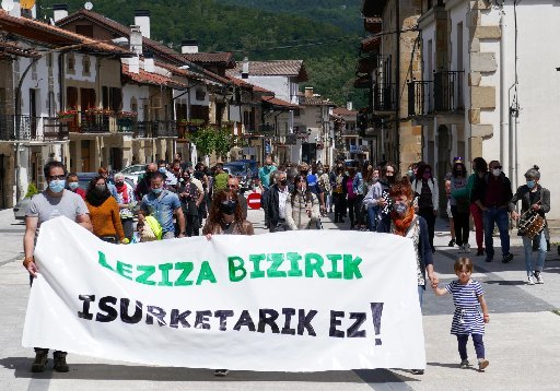 Convocadas por la plataforma Leziza Bizirik, más de un centenar de personas se manifestaron el domingo en Arbizu para exigir a la empresa Agotzaina que adopte las medidas necesarias para impedir el vertido de residuos al Leziza y así recuperar la vida de este río que atraviesa el pueblo. Esta plataforma recogió 421 firmas contra los vertidos, más del 45% de los vecinos y vecinas mayores de 16 años, 921 en total. Se presentaron al departamento de Medio Ambiente del Gobierno de Navarra y a la propia empresa en marzo.