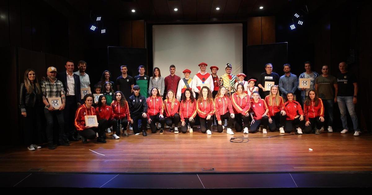 El euskera estuvo muy presente en el evento, no solo en las palabras del presentador de la gala, Alain Salterain, sino, sobre todo, por el premio que recibió Sasiburu Euskara Elkartea por sus 30 años de trabajo por impulsar esta lengua en Barakaldo. “El uso del euskera ha subido mucho en Barakaldo, ahora contamos con 24.000 vascoparlantes“, apuntó Ander Ezeiza, miembro de Sasiburu Euskara Elkartea. Ellos fueron los primeros en aparecer en el escenario en una entrega de premios que duró cerca de una hora y en la que el mundo del deporte tuvo un gran protagonismo, dado que la mitad de los premiados estaban relacionados con la práctica deportiva. La historia de Sandra Sevillano, la atleta de montaña residente en Santurtzi, es de pura superación y éxito. El pasado año se alzó con el campeonato de Europa tras correr 42 de los 65 kilómetros de la prueba con una fuerte torcedura de tobillo y este año, pese a sufrir un ataque de ansiedad en mitad del campeonato del mundo, logró el bronce. En el deporte, algunas veces se gana y la inmensa mayoría se pierde, pero lo importante es intentarlo y trabajar día a día por superarse. El Peña Athletic Santurtzi lleva 25 años trabajando por fortalecer el fútbol femenino y esta pasada temporada su equipo senior ha paladeado las mieles del éxito con su ascenso a Liga Vasca. Ese mismo esfuerzo por impulsar el BTT es lo que está haciendo el colectivo Biker de Barakaldo a través de iniciativas como la prueba El Pulmón de Acero. Por último, en lo que al deporte se refiere, el Club Waterpolo Sestao recibió un sincero y merecido aplauso durante el cual pidieron que la piscina exterior de Sestao tuviera una cubierta que pudieran utilizar.