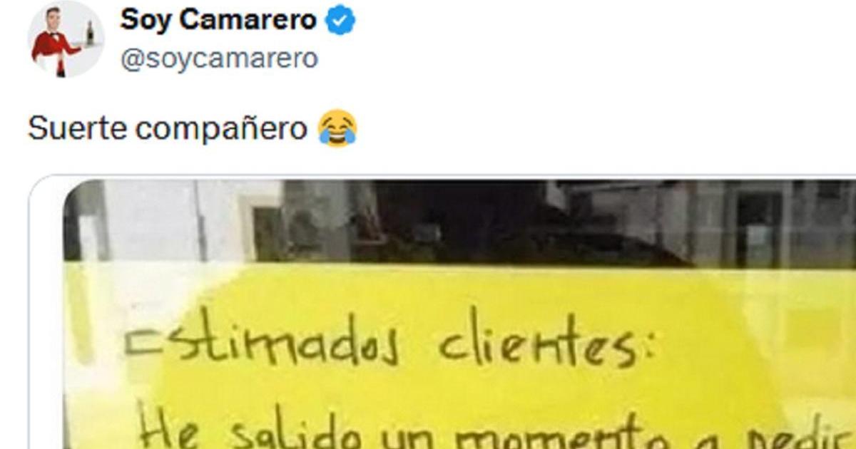 “Suerte, compañero”, ha titulado el post Jesús Soriano, profesional de la hostelería que gestiona ese conocido perfil. Y la necesitaría el comerciante que ha escrito ese cartel, aunque todo hace indicar que lo que pone no es más que una historia inventada con humor.