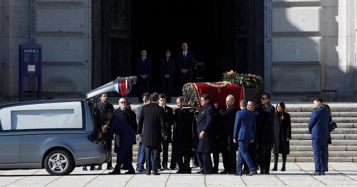 Familiares de Franco sacan el féretro con los restos del dictador de Cuelgamuros.