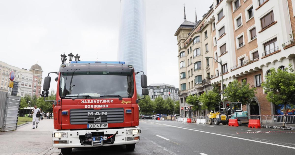 Los Bomberos han acudido a la plaza por el aviso de un escape de gas | Markel Fernández, Deia