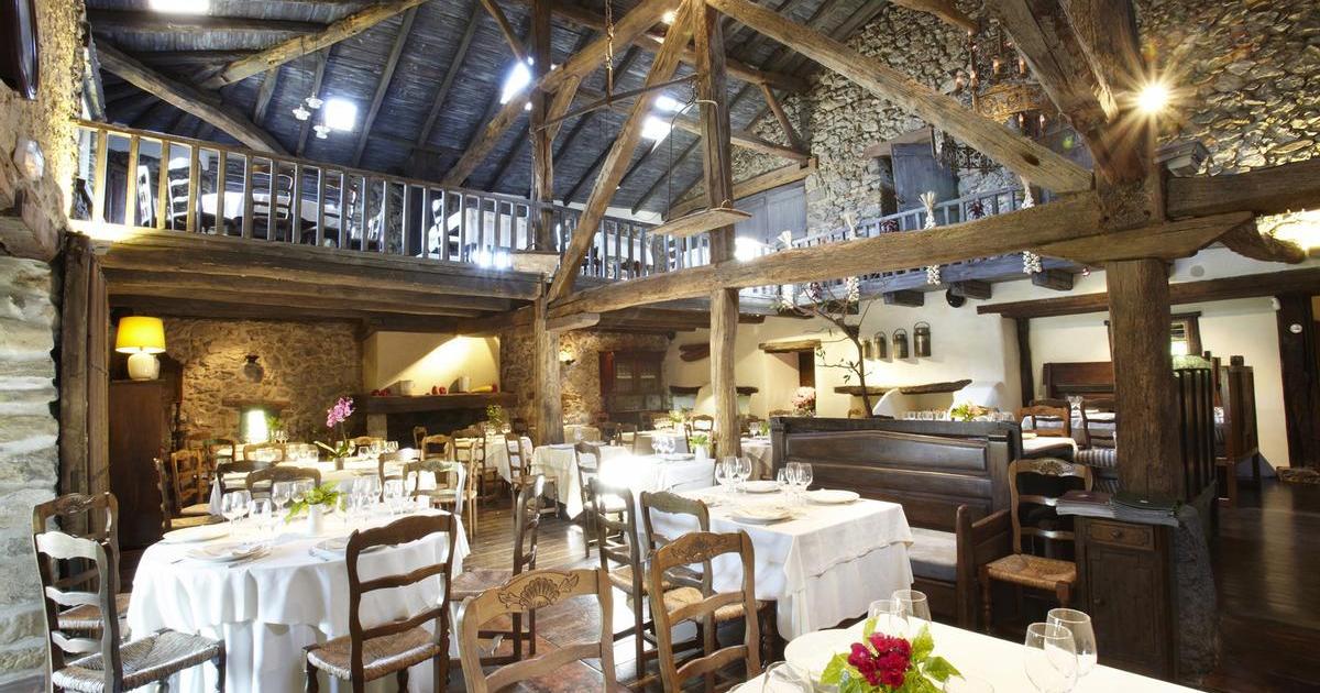 Interior de piedra y madera del restaurante Baserri Maitea.