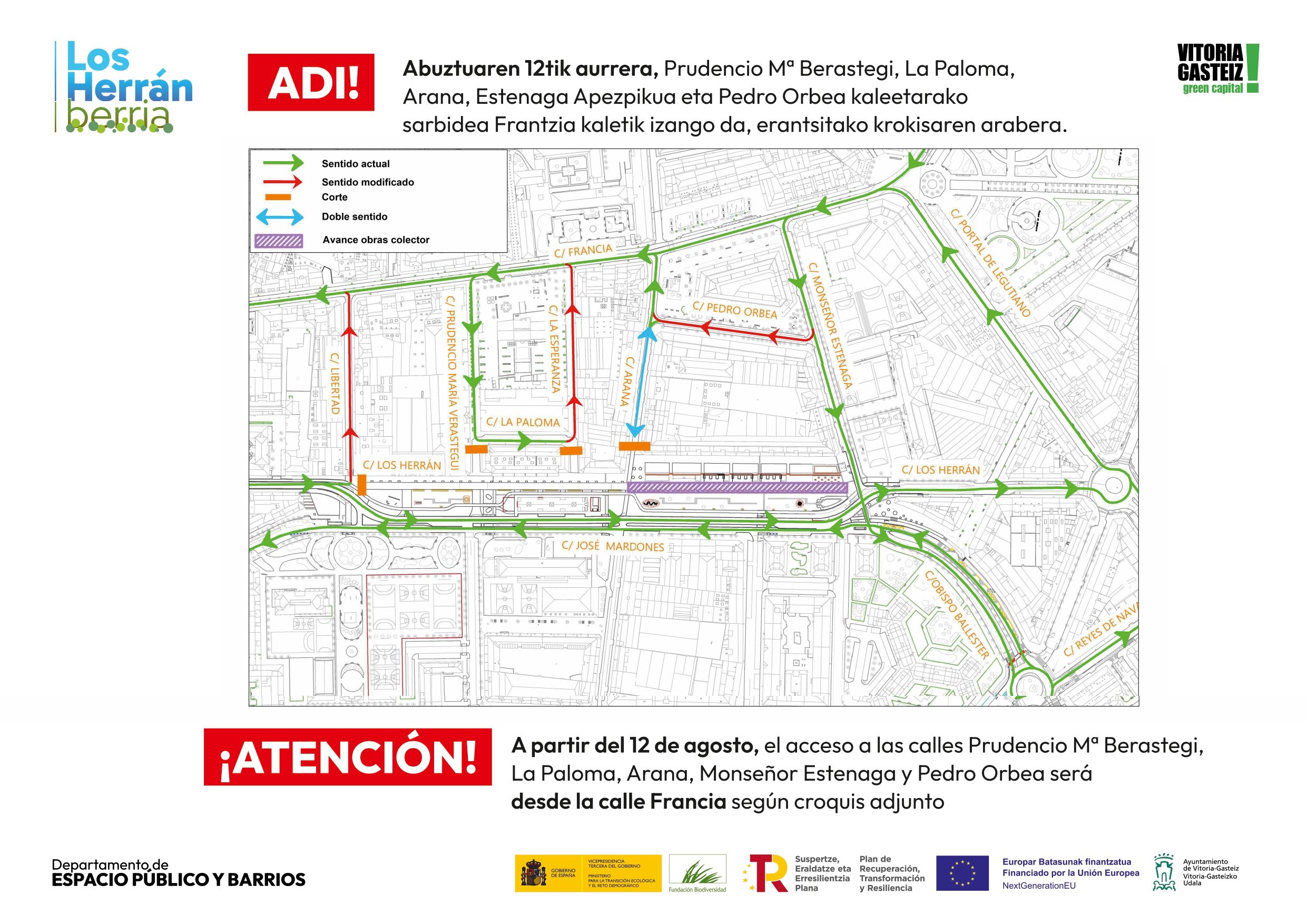 Desde hoy lunes 12 de agosto se cierra la calle Los Herrán desde Libertad. Ese vial permanecerá cortado al tráfico entre Libertad y Monseñor Estenaga, que recuperará su conexión con Los Herrán.