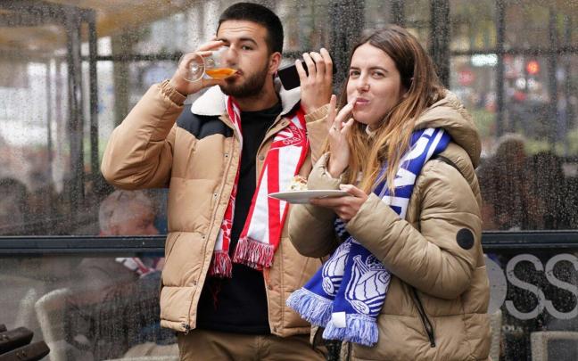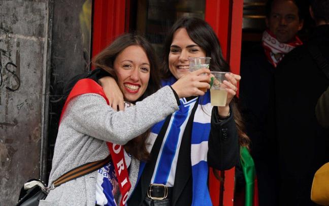 Durante este mediodía, como en todos los encuentros entre ambos equipos, se ha podido ver haciendo la previa por Bilbao a familias y grupos de amigos. El ambiente entre los dos equipos está siendo de gran alegría y celebración, con muchos grupos pasando las horas anteriores al partido en la calle Pozas.