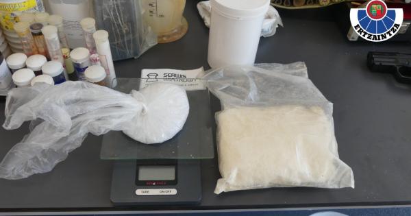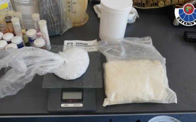 La Ertzaintza, con la correspondiente autorización y presencia judicial, realizó sendas entradas y registros en dos inmuebles de Getxo y Leioa, donde se localizaron y ocuparon diferentes sustancias químicas y materiales para el proceso de fabricación de la droga en el laboratorio.