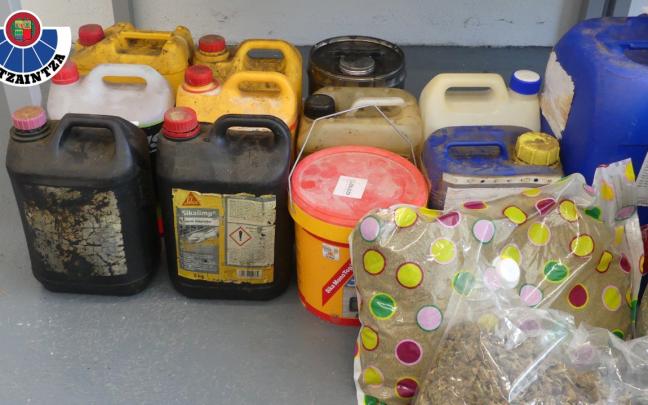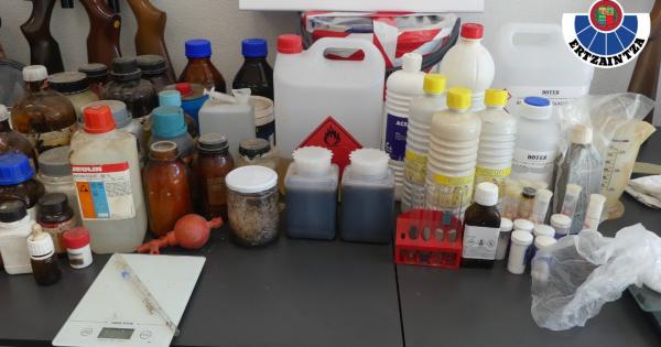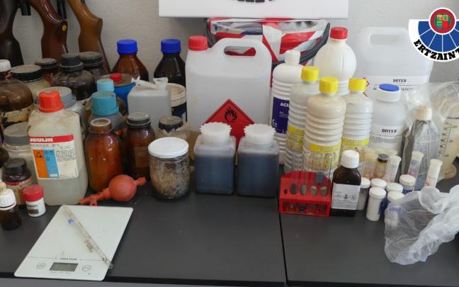 De esta manera, la Ertzaintza accedió al lugar e identificó a tres personas, dos hombres y una mujer, percibiendo los recursos policiales un fuerte olor a productos químicos y observando sacos con sustancias en polvo y garrafas con líquidos destinados a la mencionada actividad ilícita.