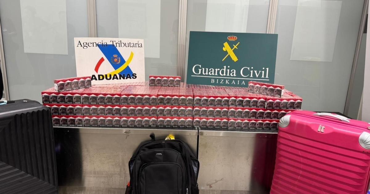 Guardias civiles de la Sección Fiscal y de Fronteras del aeropuerto de Bilbao, junto con funcionarios del Servicio de Vigilancia Aduanera de la Agencia Tributaria, han detenido a un pasajero por un presunto delito de contrabando tras descubrir 2.550 cajetillas de tabaco sin declarar en su equipaje facturado, valoradas en 15.300 euros.