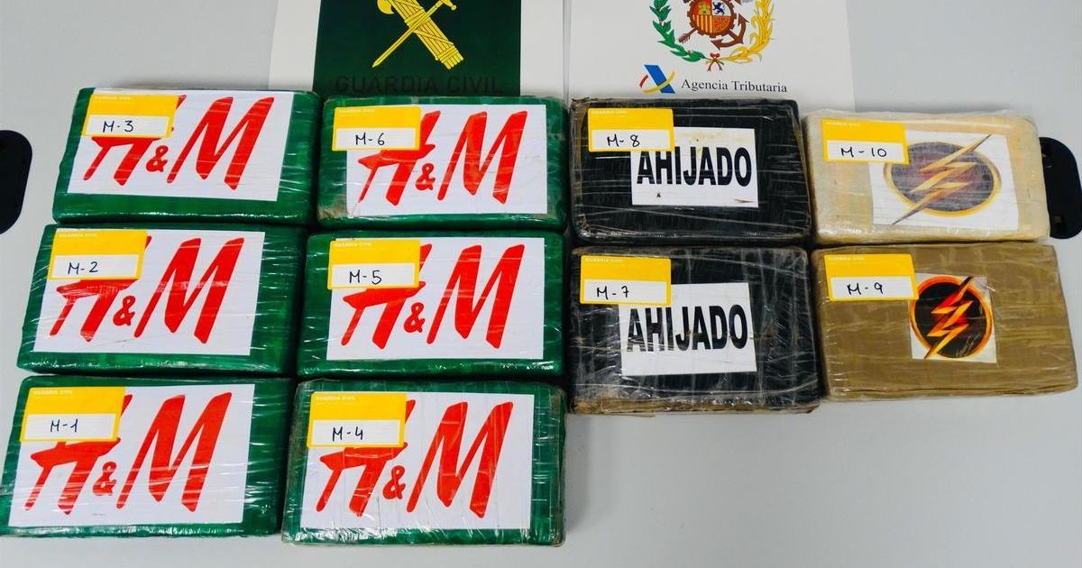 No obstante, entre esta carga, se localizó una bolsa de deporte, cuyo fuerte olor químico fue detectado por el perro de la Guardia Civil. En su interior se hallaron diez paquetes en forma de ladrillo que, tras ser sometidos a prueba con reactivo de detección de drogas, dieron resultado positivo en cocaína.