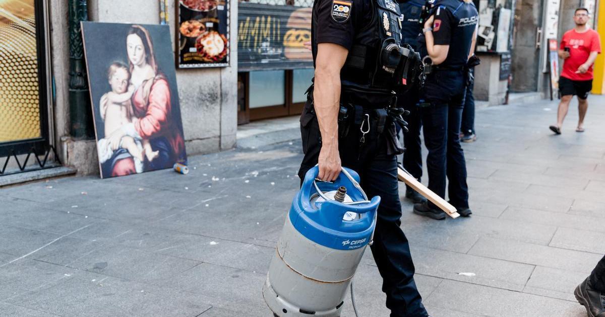 Agentes de la Policía Nacional sacan la bomba de butano con la que amenazaba el detenido / EP