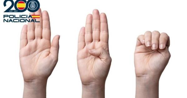 La víctima aprovechó el momento en que había testigos observando a ambos para, de forma disimulada, realizar la señal internacional de auxilio, consistente en plegar el dedo pulgar de la mano derecha sobre la palma y seguidamente los cuatro dedos sobre el mismo.