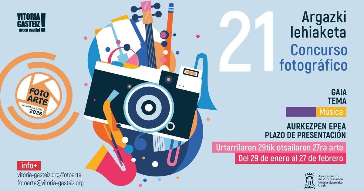 Bestalde, beste gai batzuekin jarraituz, Gasteizko Udalak antolatzen duen FotoArte argazki lehiaketaren 21. edizioak ostegunean irekiko du lanak aurkezteko epea, urtarrilaren 29an, eta otsailaren 27ra arte egongo da zabalik. Argazki egileek landu beharreko musika da, eta 2.400 euroko balioa duten sariak banatuko dira.