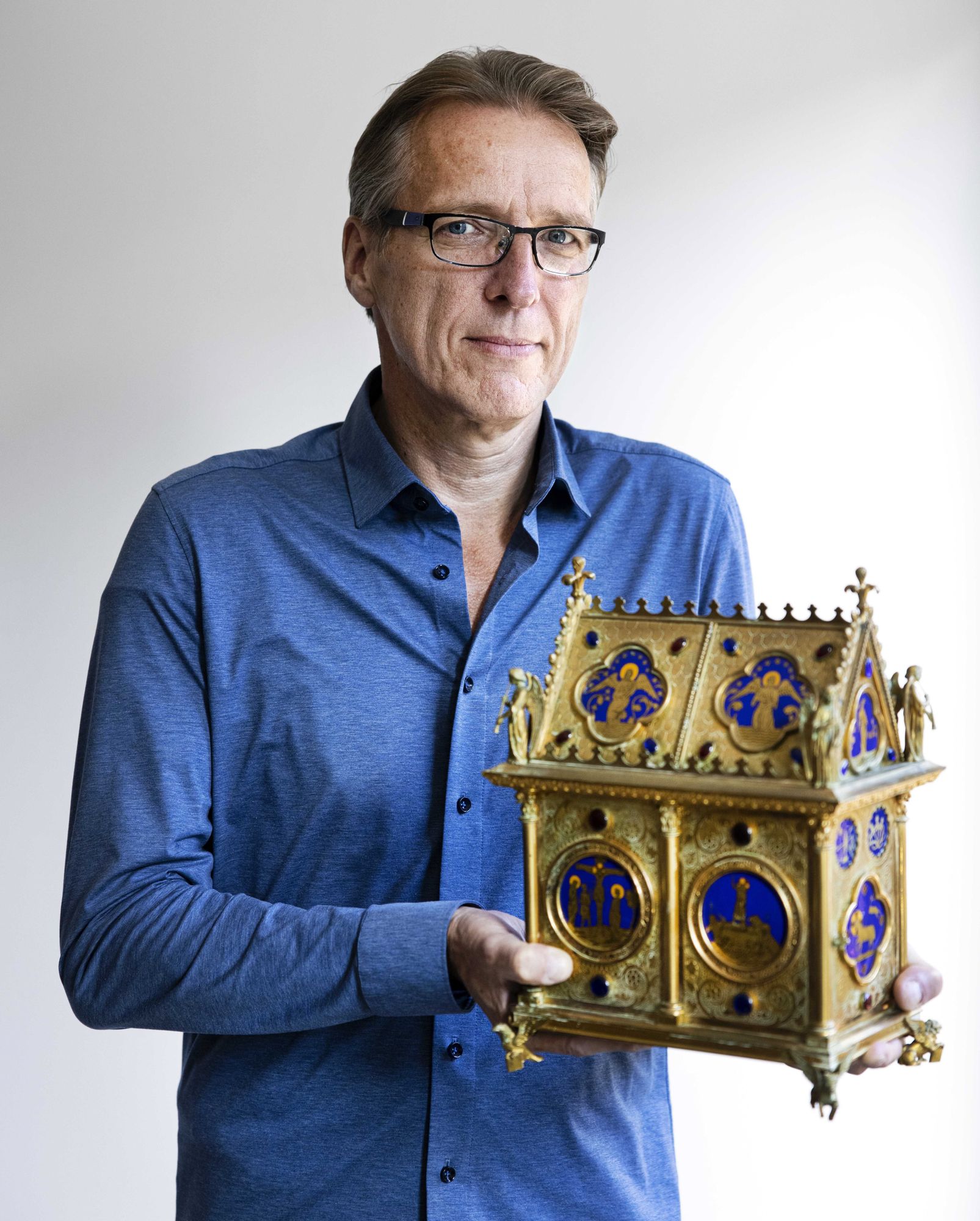 El relicario "Sangre Preciosa" de Jesús, una iglesia en miniatura decorada con piedras azules que fue robada en Francia a principios de junio, fue devuelta en Países Bajos al detective de arte neerlandés Arthur Brand, quien aseguró este martes que los ladrones dejaron la pieza original en la puerta de su casa.
