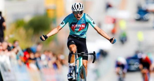Diego Uriarte festeja la victoria lograda en Alhaurín de la Torre en la Vuelta a Andalucía. / Kern Pharma / Sprint Cycling