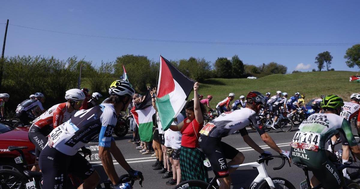 Protesta propalestina en la subida al Angliru de la Vuelta 2025.