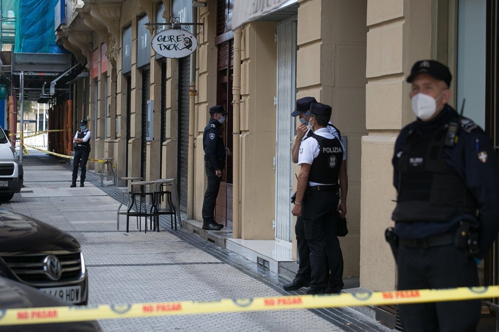 Agentes custodian la entrada al bar incendiado el pasado domingo. Foto: I. Azurmendi "En esta Donostia que se está convirtiendo en una ciudad de turismo de élite, para el negocio de unas pocas personas", la precariedad, "sobre todo en la hostelería", es "alarmante", y sus trabajadores sufren "ritmos brutales y jornadas interminables", que no respetan la legislación laboral ni de prevención, mientras "las instituciones sistemáticamente miran para otro lado".