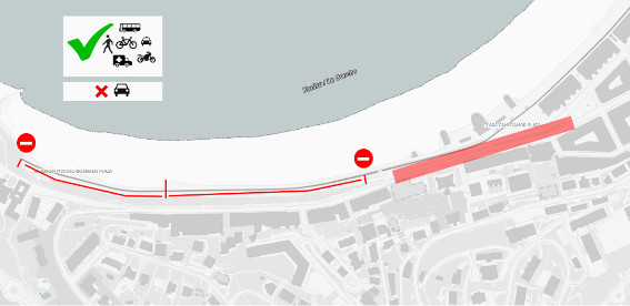 Será por lo tanto el día 28 cuando el espacio comprendido entre el túnel de Ondarreta y la plaza Zubieta, junto al hotel Niza, quedará cerrado al tráfico de coches privados, por lo que si desde ya es recomendable que quienes se desplacen en vehículo privado de un lado a otro de la ciudad lo hagan a través de rutas alternativas como el Vial o la Variante, a partir de la semana que viene será imprescindible.