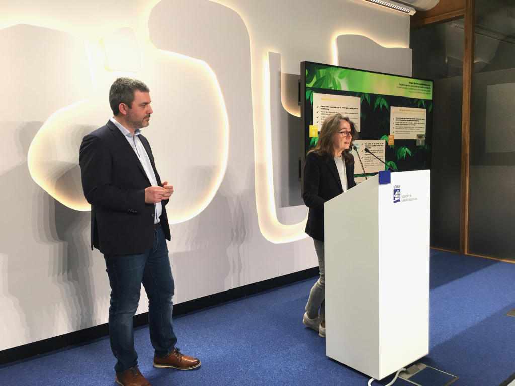 (El presidente de Apartura, Asier Pereda, y la concejala de Ecología, Marisol Garmendia, en la presentación de la iniciativa).