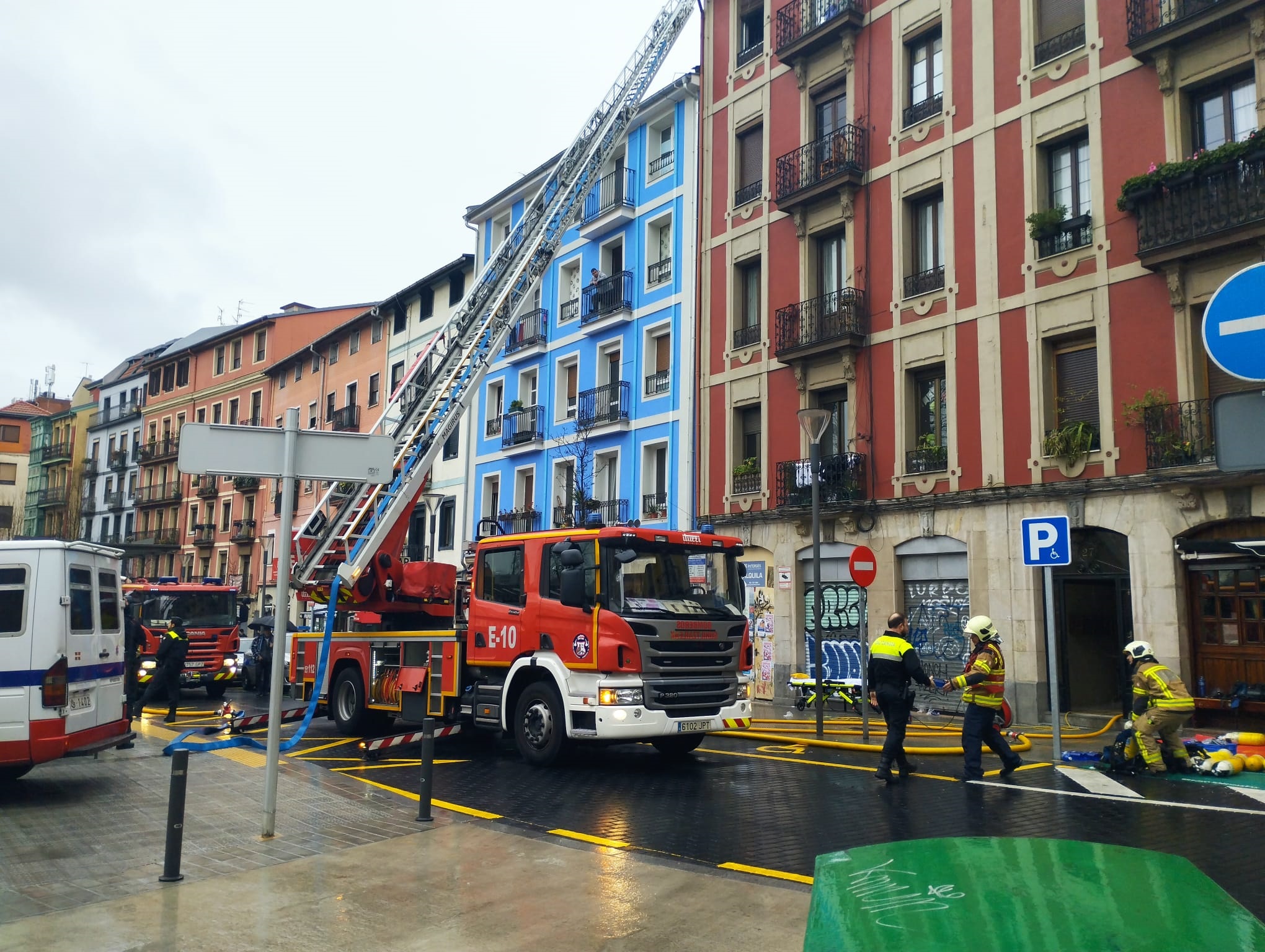 Ignacio García Urkizo, Oficial Jefe de Operaciones de Bomberos de Bilbao ha explicado in situ que "el incendio estaba completamente desarrollado al llegar los bomberos en el 4º piso interior del número 27. Se oían los gritos de dos personas, un hombre y una mujer, que hemos rescatados con vida y que han sido trasladadas a la Unidad de Grandes Quemados del Hospital de Cruces. Un bombero ha sido evacuado también a Cruces con quemadura de carácter más leve"
