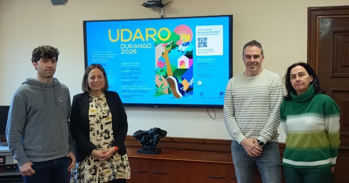 El Consistorio de Durango ha presentado este lunes el programa UDARO 2026, la oferta municipal de campamentos de verano que abrirá el próximo viernes, 20 de marzo, su plazo de inscripción con más de 600 plazas disponibles, la cifra más alta hasta la fecha. El programa, dirigido a niños, niñas y adolescentes de entre 3 y 16 años, volverá a combinar actividades educativas, deportivas y de ocio durante el periodo estival, con el objetivo de ofrecer alternativas de tiempo libre en un entorno seguro y, al mismo tiempo, facilitar la conciliación de la vida familiar. El plazo para apuntarse permanecerá abierto hasta el 30 de marzo y el proceso se realizará a través del código QR incluido en los carteles informativos o en la web municipal www.durango.eus/udaro, donde también se puede consultar toda la normativa.
