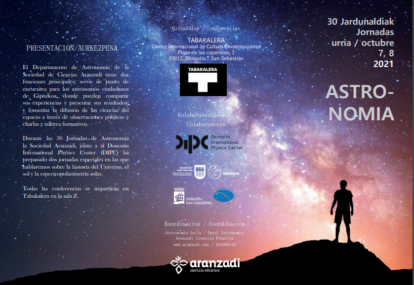 Oso gutxi dakigu galaxiari buruz eta bizi garen unibertsoaz. Horregatik dira interesgarriak Aranzadi Zientzia Elkarteak antolaturiko jardunaldiak. Urriaren 7 eta 8an Tabakaleran hainbat astrofisikarik esplikatuko dituzte, modu ulergarri eta didaktikoan, unibertsoaren historia eta, gonbidatu nagusiak, Jose Carlos Toro Iniestak, eguzkiari eskainiko dio hitzaldi nagusia: "El sol, 54 añitos de una historia de 4.500 millones".