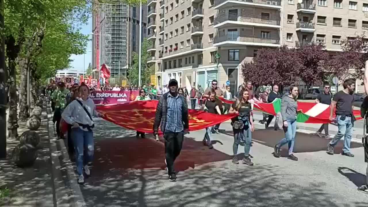 Varios miles de personas, unas 10.000, según la delegación del Gobierno en Navarra, han participado en la marcha que en una mañana soleada ha recorrido las calles de la capital navarra, encabezada por una ikurriña y una bandera de Navarra, de grandes dimensiones, seguida de una pancarta en la que se leía "Euskal errepublika. Bakea, burujabetza, demokrazia" (República vasca. Paz, soberanía, democracia).