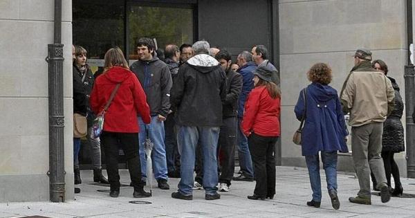 Varias personas, en el acceso al Ayuntamiento de Kuartango.