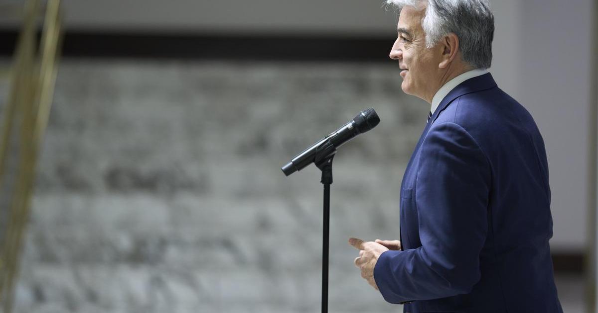 El presidente del PP de la CAV, Javier de Andrés, ofrece declaraciones momentos antes del pleno del Parlamento Vasco / Efe