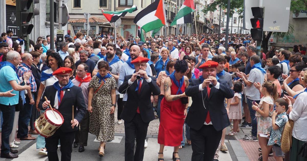 La llegada de los dulzaineros de Estella se vio acompañada por miles de eibartarras. / Aitor