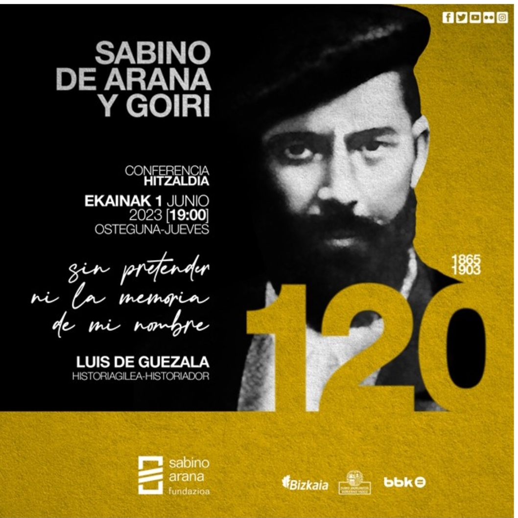 El historiador Luis de Guezala dará inicio este 1 de junio a un ciclo de actividades organizadas por Sabino Arana Fundazioa con motivo del 120 aniversario del fallecimiento del primer líder del nacionalismo vasco y de la efeméride de su juramento de Larrazabal del que se cumplen 130 años. La conferencia "Sin pretender ni la memoria de mi nombre" tendrá lugar a las 19:00 horas en Mandobide Kalea…