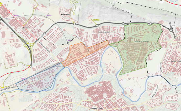 Serán zona azul viales más interiores del barrio como las calles Nazario Carriquiri, Toda Aznárez, travesía del Ave María, travesía del Plazaola, Ciudad de Sueca, Las Cendeas, Garde, Tomás de Burgui, Ansoáin o Juan de Goyeneche, así como tramos de Artica, Bernardino Tirapu y travesía de Tomás de Burgui y las plazas de Marcelo Celayeta que lindan con esa parte norte del barrio.