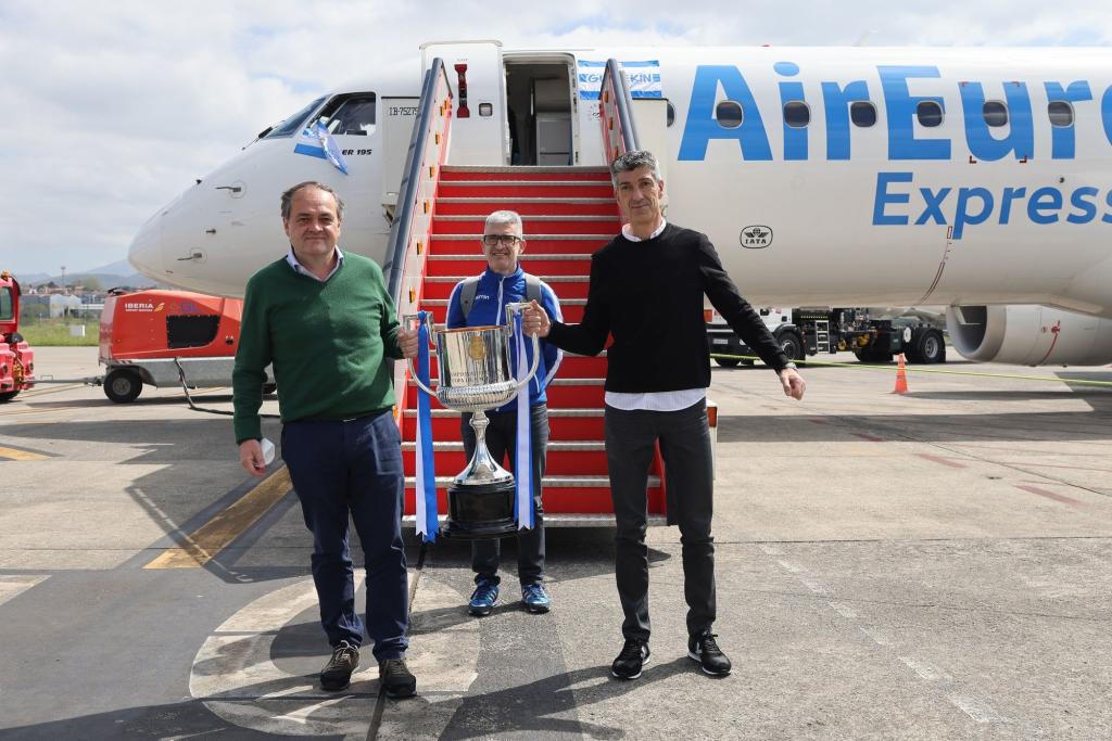 El chárter que trajo a la Real de vuelta de Sevilla con la Copa del Rey en abril, uno de los vuelos más importantes del año en Hondarribia. Foto: R.S. Vitoria es el aeródromo de Hegoalde que mejor diciembre se anota, al crecer un 31% respecto al mismo mes de 2019 (14.950 pasajeros), seguido de Hondarribia (un 16,9% menos que en 2019, 17.404 pasajeros); Bilbao (un 30,5% menos, 276.405 viajeros), y Pamplona, que cae un 39,4% al desplazar 11.704 pasajeros.