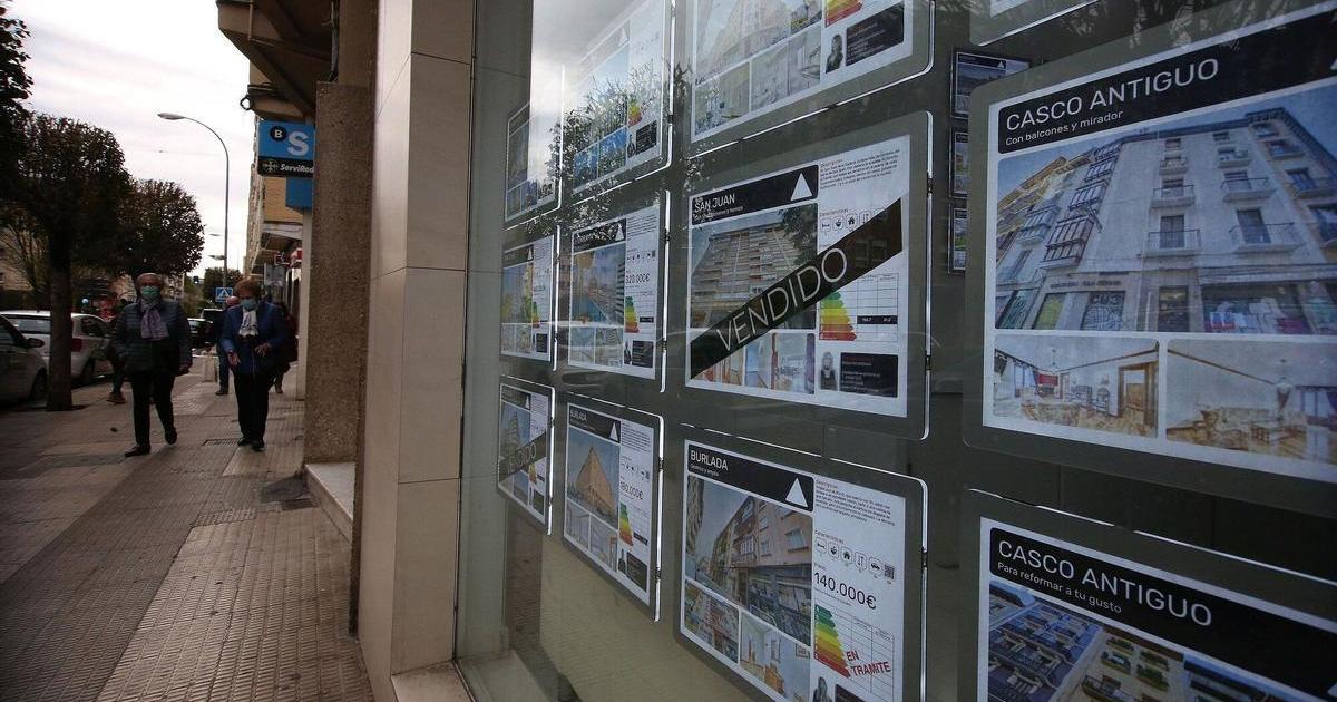 Escaparate de una inmobiliaria con anuncios de pisos en venta y alquiler. / Javier Bergasa