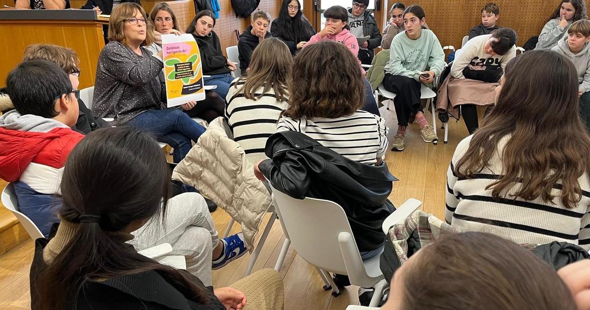 En esta iniciativa han estado trabajado desde el inicio del nuevo curso y han vuelto al Consistorio para dar cuenta de los avances ante la técnica de Medio Ambiente, Ainara Tellaetxe, y la alcaldesa en funciones, Edurne Espilla, que ha mostrado su deseo de que la futura campaña “impacte de forma positiva en toda la ciudadanía”. El Consistorio, por su parte, también está cumpliendo los compromisos adquiridos con el alumnado en materia de “plantación de más árboles, mejorar el cuidado de las plantas y los animales e implementar acciones informativas para fomentar el respeto y el cuidado de la naturaleza”, enumeró Tellaexe.