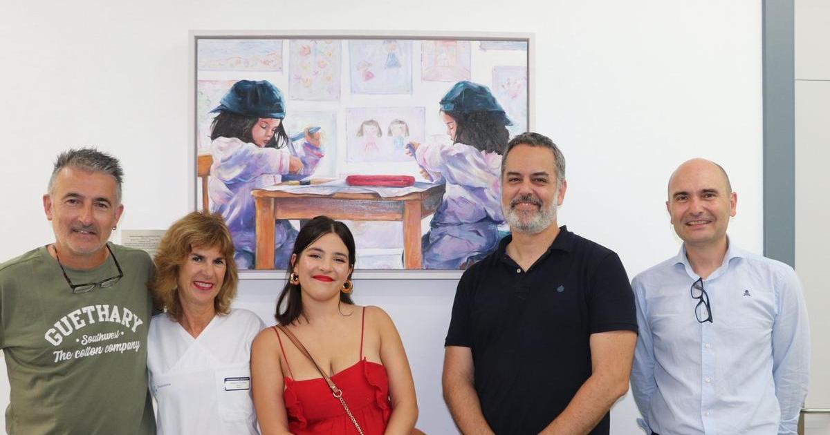 Por ello, no es de extrañar que en su obra, un óleo sobre lienzo en formato 100x70, haya querido representar la infancia y la capacidad de creación de los más jóvenes. Lo ha hecho a través de la imagen de dos niñas sentadas en torno a una mesa dando rienda suelta a su imaginación con pinturas de colores en la mano. Y de fondo una pared con sus dibujos colgados. Sin duda, se ha inspirado en la infancia junto a su hermana. “A las dos nos gustaba mucho pintar. Tengo guardados nuestros dibujos en una carpeta y los he rescatado para plasmarlos en esta obra”, explica.