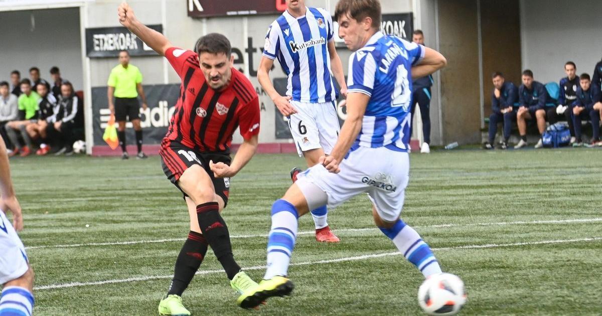 La Real C, a la que le costó asimilar el nuevo escenario del duelo, dio un paso adelante y pasada la hora de juego fue a por el empate. Estuvo a punto de sumar un punto el conjunto donostiarra en el tiempo extra pero el remate forzado de Orobengoa se estrelló en la cruceta.