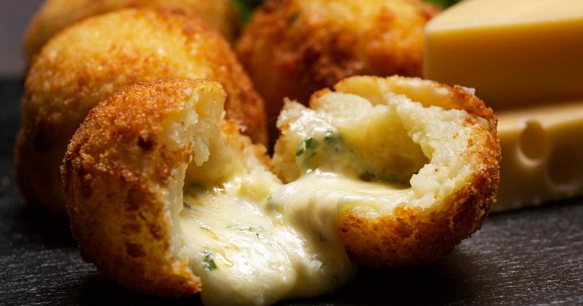 Un bol lleno de croquetas recién hechas sale a la mesa.