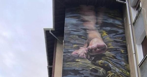 Unos pies que se sumergen en el agua fresca de los riachuelos que recorren el término municipal. Un símbolo de naturaleza y vida compartida. Es el mensaje que pretende transmitir el nuevo mural con el que Lemoa sigue vistiendo de arte urbano fachadas, hasta ahora, grises e inertes.