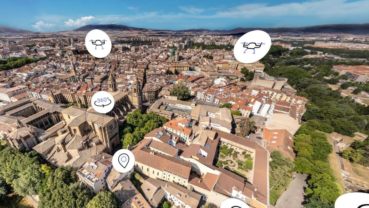 Esta visita ofrece la posibilidad de realizar en cuatro idiomas un recorrido por el Camino y por la ciudad a ‘vista de pájaro’, añadiendo información sobre de los puntos de interés de la Ruta Jacobea a su paso por Pamplona. Así, apoyados en vistas aéreas en fotografías 360º, quienes navegan pueden adentrarse también virtualmente en monumentos vinculados al Camino, como la Catedral de Santa María, la Casa Consistorial, las iglesias de Santo Domingo, San Saturnino, San Cernin, San Lorenzo y el Centro de Interpretación del Camino de Santiago/ Ultreia.