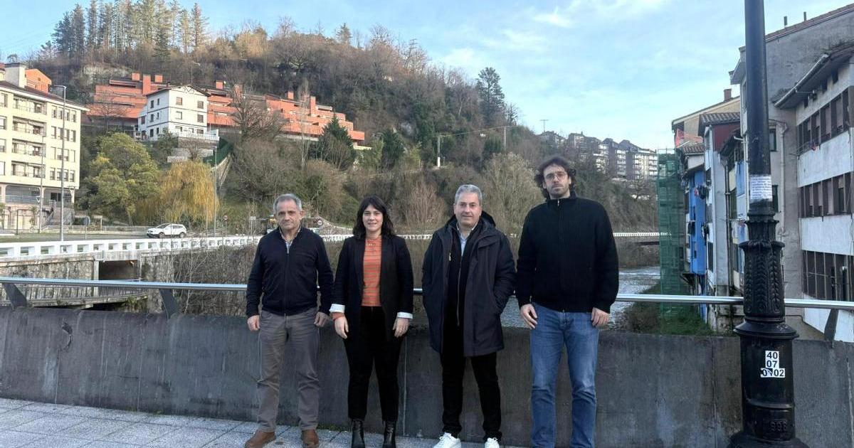 Representantes de la Diputación Foral de Gipuzkoa junto a los alcaldes de Elgoibar y Mendaro en el puente de Txankakua / NTM