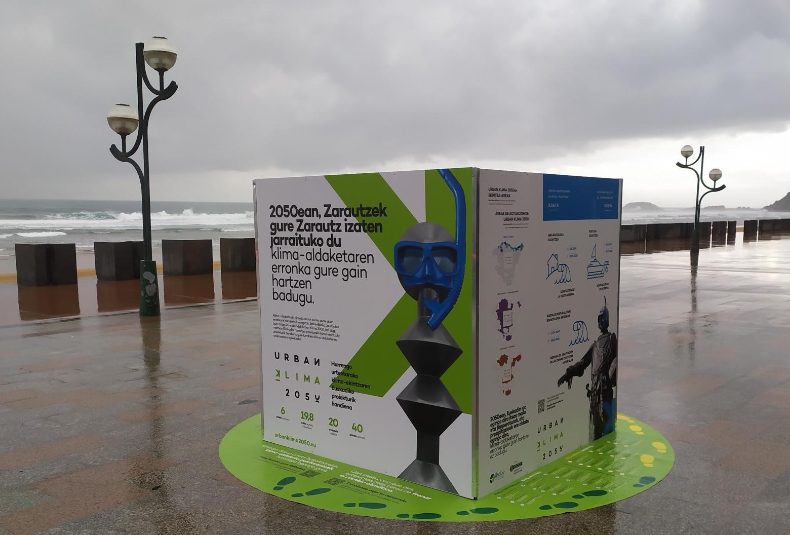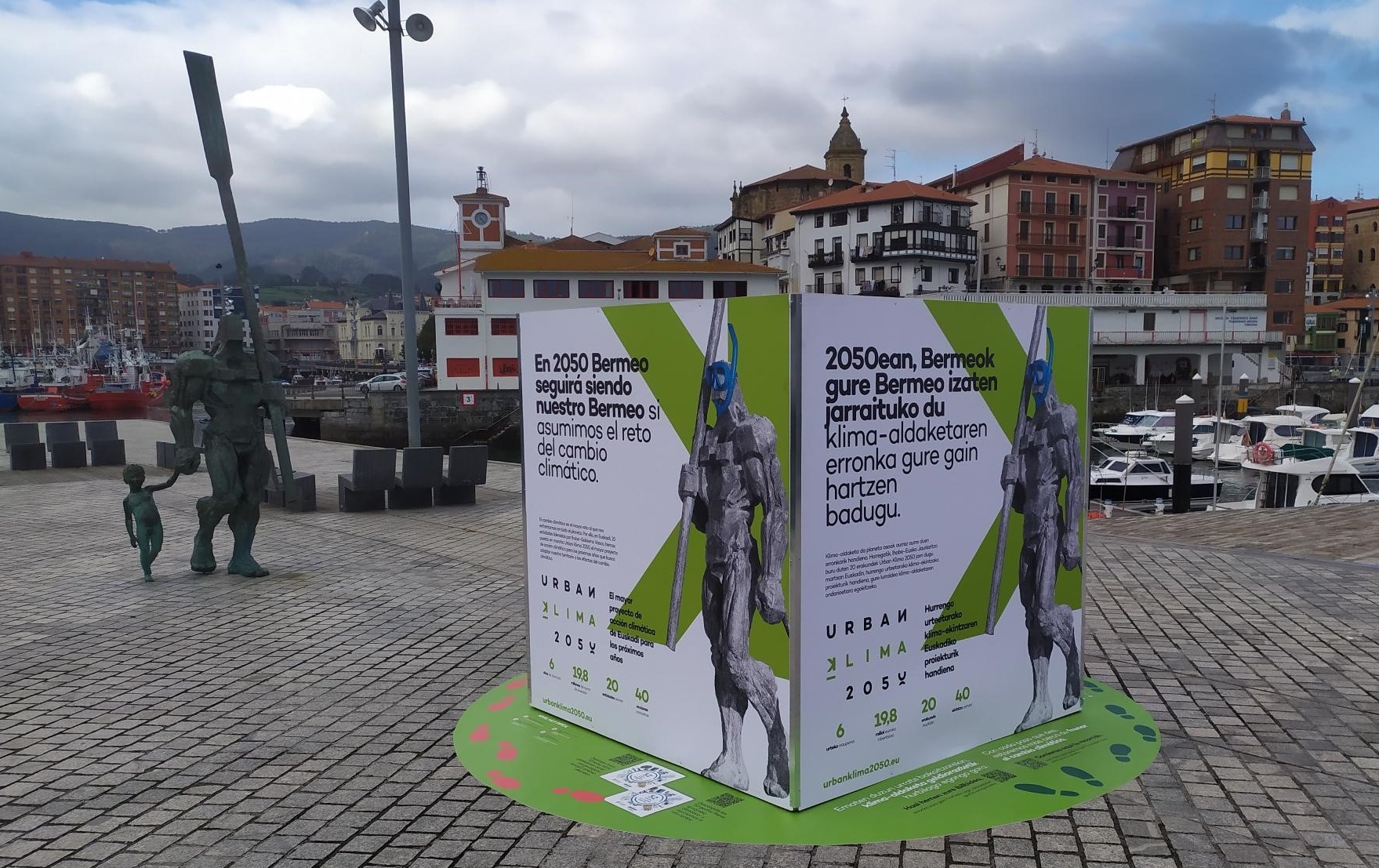 Si han paseado estos días por Bilbao, Donostia, Vitoria-Gasteiz, Bakio, Bermeo, Gernika o Zarautz quizá se hayan topado con unos cubos de grandes dimensiones en los que pueden verse las estatuas más emblemáticas de estos municipios con gafas de bucear. Es el modo directo y visual elegido por la campaña Urban Klima 2050 de Euskadi para "mostrar a qué nos enfrentamos en Euskadi si no asumimos el reto del cambio climático". Los paneles informativos incluyen también información sobre las acciones puestas en marcha en las zonas urbanas, la costa y las cuencas de los ríos.