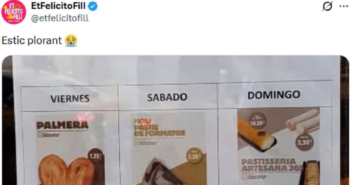 Esa, la del buen diseño, es la explicación más lógica que se puede imaginar para lo que ha sucedido en un comercio del que no se tienen muchos datos. En concreto en un cartel. Parece una pastelería catalana, por los productos que ofrece y porque algunas palabras están escritas en catalán, aunque el idioma principal es el castellano.