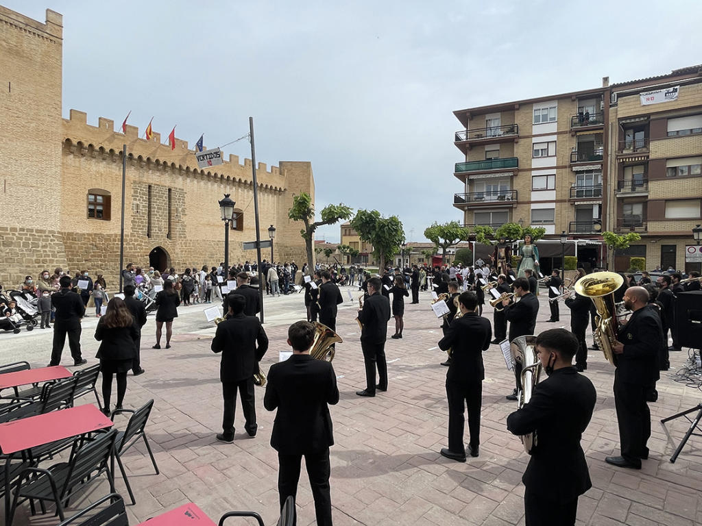 La banda de música, los gaiteros, dantzaris y gigantes, que poco a poco van retomando su actividad, han recibido a las autoridades que se acercaron hasta Marcilla y que han participado en una extraordinaria visita guiada divididos en grupos y en la que no ha faltado la parada en la exposición de armas ofensivas y defensivas de la Edad Media que Rubén Sáez se encargó de explicar. Allí han estado, entre otros, José Luis Arasti, delegado del Gobierno de Navarra, Rebeca Esnaola, consejera de Cultura del Ejecutivo, José Javier Esparza, portavoz de Navarra Suma, Juan Carlos Castillo, presidente de la FNMC, el alcalde Fabo y la corporación marcillesa, antiguos alcaldes de la localidad como Paca Catalán o José Mª Abárzuza, así como representantes de localidades vecinas como Funes y de empresas y agrupaciones marcillesas.