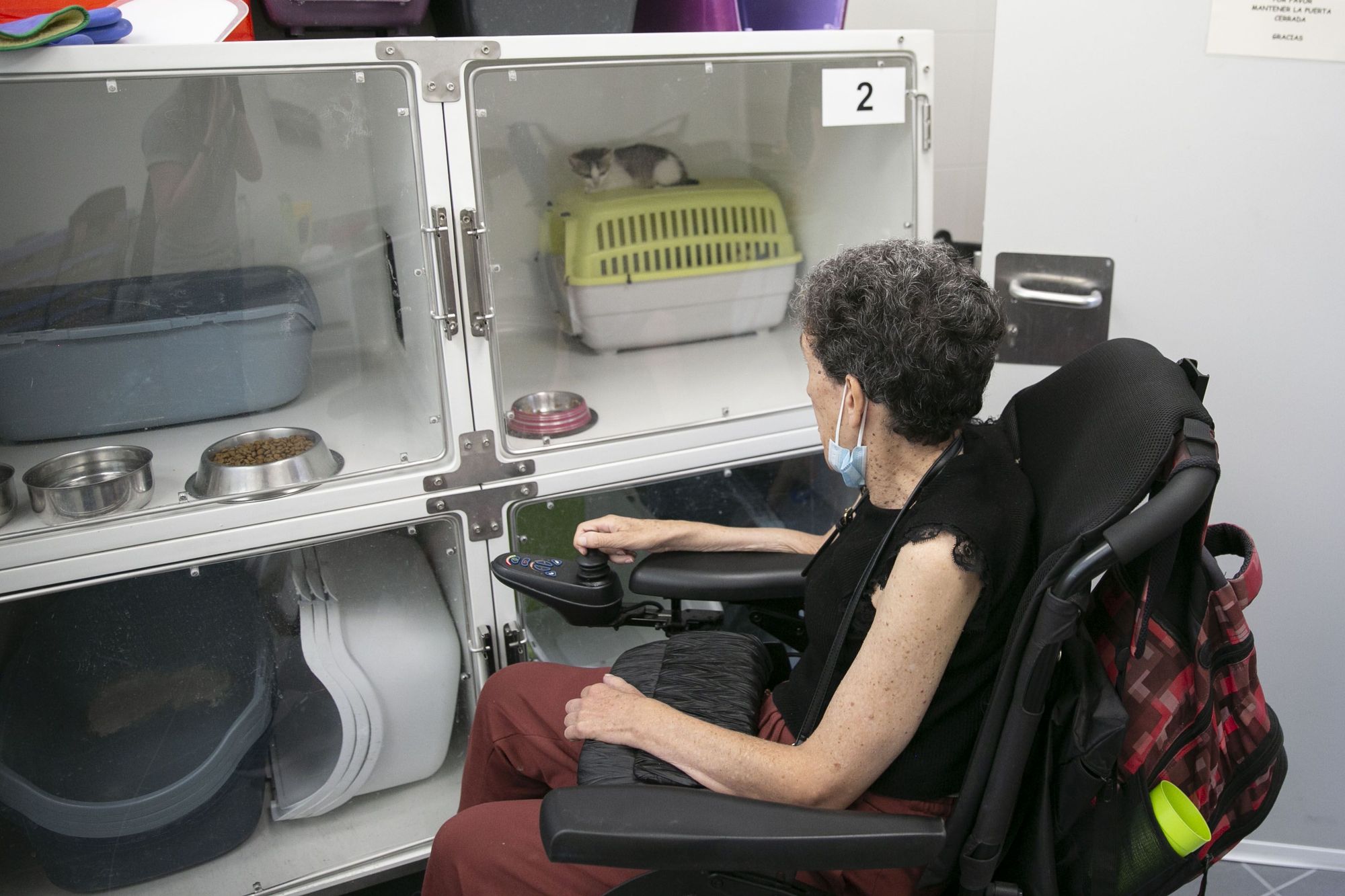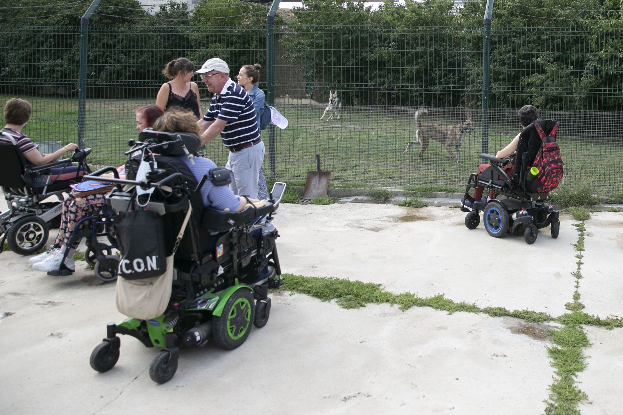 Esta mañana una decena de personas afectadas por esclerosis múltiple y otras enfermedades neurodegenerativas han estado visitando el Centro de Atención de Animales del Ayuntamiento de Pamplona. La excursión forma parte de las actividades externas de ocio del centro de día de la Asociación de Esclerosis Múltiple de Navarra y se ha programado, además, por el enfoque terapéutico que puede tener el trato con mascotas para las personas afectadas. Hasta este recurso municipal se desplazaban también la trabajadora social y la terapeuta ocupacional del centro, así como personas cuidadoras. En Navarra hay alrededor de 900 personas que padecen esta enfermedad que afecta especialmente a las mujeres. La asociación cuenta actualmente con 600 socios y socias.