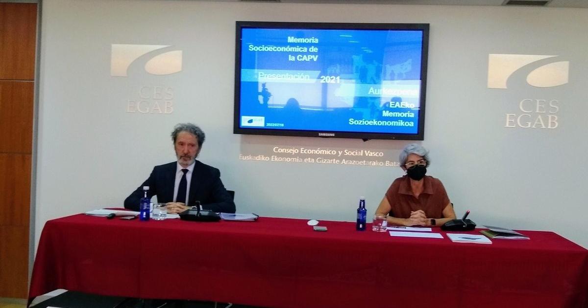 La presidenta del Consejo, Emilia M. Málaga, y el máximo responsable de la comisión encargada de realizar el informe, Jon Barrutia, presentaron ayer lunes en Bilbao las claves del balance del año pasado, en el que la progresiva retirada de las restricciones “favoreció un mayor dinamismo de la actividad económica” y de la que se han beneficiado “todos los sectores de actividad”, aunque “todavía no se ha llegado al nivel de actividad previo a la pandemia”. En lo que se refiere al empleo y las relaciones laborales, el CES destaca que en 2021 se dio un crecimiento que “prácticamente” ha permitido recuperar la situación prepandémica.